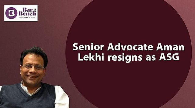 ಭಾರತದ ಹೆಚ್ಚುವರಿ ಸಾಲಿಸಿಟರ್ ಜನರಲ್ ಹುದ್ದೆಗೆ ಹಿರಿಯ ವಕೀಲ ಅಮನ್ ಲೇಖಿ ಅವರು ರಾಜೀನಾಮೆ ನೀಡಿದ್ದಾರೆ. ಕೇಂದ್ರ ಕಾನೂನು ಸಚಿವ ಕಿರೆನ್ ರಿಜಿಜು ಅವರಿಗೆ ಬರೆದಿರುವ ಪತ್ರದಲ್ಲಿ ತಾವು ಎಎಸ್ಜಿ ಹುದ್ದೆಗೆ ತಕ್ಷಣದಿಂದ ಜಾರಿಗೆ ಬರುವಂತೆ ರಾಜೀನಾಮೆ ಸಲ್ಲಿಸಿರುವುದಾಗಿ ಹೇಳಿದ್ದಾರೆ. ಇದರ ಹೊರತಾಗಿ ರಾಜೀನಾಮೆಗೆ ಯಾವುದೇ ನಿರ್ದಿಷ್ಟ ಕಾರಣಗಳನ್ನು ಅವರು ತಿಳಿಸಿಲ್ಲ. ಮಾರ್ಚ್ 2018ರಲ್ಲಿ ಲೇಖಿ ಎಎಸ್ಜಿ ಹುದ್ದೆಗೆ ನೇಮಕಗೊಂಡಿದ್ದರು.