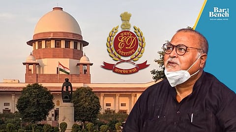 ಶಿಕ್ಷಕರ ನೇಮಕಾತಿ ಹಗರಣಕ್ಕೆ ಸಂಬಂಧಿಸಿದಂತೆ ತಮ್ಮ ವಿರುದ್ಧ ಹೂಡಲಾಗಿರುವ ಅಕ್ರಮ ಹಣ ವರ್ಗಾವಣೆ ಪ್ರಕರಣದಲ್ಲಿ ಜಾಮೀನು ಕೋರಿ ಪಶ್ಚಿಮ ಬಂಗಾಳದ ಮಾಜಿ ಶಿಕ್ಷಣ ಸಚಿವ ಪಾರ್ಥ ಚಟರ್ಜಿ ಅವರು ಸಲ್ಲಿಸಿದ್ದ ಅರ್ಜಿಗೆ ಸಂಬಂಧಿಸಿದ ತೀರ್ಪನ್ನು ಸುಪ್ರೀಂ ಕೋರ್ಟ್ ಬುಧವಾರ ಕಾಯ್ದಿರಿಸಿದೆ [ ಪಾರ್ಥ ಚಟರ್ಜಿ ಮತ್ತು ಜಾರಿ ನಿರ್ದೇಶನಾಲಯ ನಡುವಣ ಪ್ರಕರಣ].
