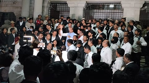 ಇತ್ತ ರಾಜ್ಯ ವಕೀಲರ ಪರಿಷತ್ ಅಧ್ಯಕ್ಷ ವಿಶಾಲ್ ರಘು ಅವರು “ಮತ ಬ್ಯಾಂಕ್ ರಾಜಕಾರಣಕ್ಕಾಗಿ ವಕೀಲರ ಒಗಟ್ಟು ಒಡೆಯುವ ಕುತಂತ್ರ ನಡೆಯುತ್ತಿದೆ. ನಮ್ಮ ಬೇಡಿಕೆ ಈಡೇರಿಸದಿದ್ದರೆ, ನ್ಯಾಯಾಲಯದ ಆವರಣಕ್ಕೆ ರಾಜಕಾರಣಿಗಳು ಮತ್ತು ಪೊಲೀಸರು ಬರಲು ಅವಕಾಶ ನೀಡುವುದಿಲ್ಲ. ವಕೀಲರು ಕಾನೂನು ಕೈಗೆತ್ತಿಕೊಳ್ಳಲಿ ಎಂದು ನಮ್ಮನ್ನು ಕಾಯಿಸುತ್ತಿದ್ದಾರೆ” ಎಂದು ಆರೋಪಿಸಿದರು.