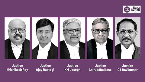 ಐದನೇ ಪೀಠದಲ್ಲಿ ನ್ಯಾಯಮೂರ್ತಿಗಳಾದ ಕೆ ಎಂ ಜೋಸೆಫ್, ಅಜಯ್ ರಾಸ್ತೋಗಿ, ಅನಿರುದ್ಧ ಬೋಸ್, ಹೃಷಿಕೇಶ್ ರಾಯ್ ಹಾಗೂ ಸಿ ಟಿ ರವಿಕುಮಾರ್ ಇರಲಿದ್ದಾರೆ. ಪೀಠವು ಕೆಳಗಿನ ಪ್ರಕರಣಗಳನ್ನು ಆಲಿಸಲಿದೆ: