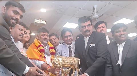 ಬೆಂಗಳೂರಿನ ಸಿಟಿ ಸಿವಿಲ್ ಕೋರ್ಟ್ ಆವರಣದಲ್ಲಿರುವ ವಕೀಲರ ಭವನದಲ್ಲಿ ಸಂಘದ ವತಿಯಿಂದ ಶುಕ್ರವಾರ ಹಮ್ಮಿಕೊಳ್ಳಲಾಗಿದ್ದ ನಾಡಪ್ರಭು ಕೆಂಪೇಗೌಡ ಜಯಂತಿ ಕಾರ್ಯಕ್ರಮದಲ್ಲಿ ಅಭಿನಂದನೆ ಸ್ವೀಕರಿಸಿ ಅವರು ಮಾತನಾಡಿದರು.