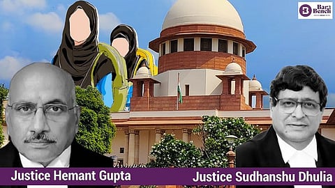 ಕಾಲೇಜು ಅಂಗಳದಲ್ಲಿ ಮುಸ್ಲಿಂ ವಿದ್ಯಾರ್ಥಿನಿಯರು ಹಿಜಾಬ್ ಧರಿಸುವುದನ್ನು ನಿಷೇಧಿಸಲು ರಾಜ್ಯದ ಸರ್ಕಾರಿ ಪದವಿ ಪೂರ್ವ ಕಾಲೇಜುಗಳಿಗೆ ಅಧಿಕಾರ ನೀಡಿದ್ದ ಕರ್ನಾಟಕ ಸರ್ಕಾರದ ಆದೇಶ ಪ್ರಶ್ನಿಸಿ ಸಲ್ಲಿಸಿದ್ದ ಅರ್ಜಿಗಳಿಗೆ ಸಂಬಂಧಿಸಿದಂತೆ ಸುಪ್ರೀಂ ಕೋರ್ಟ್ ಗುರುವಾರ ಭಿನ್ನ ತೀರ್ಪು ನೀಡಿದೆ [ಆಯಿಷತ್ ಶಿಫಾ ಮತ್ತು ಕರ್ನಾಟಕ ಸರ್ಕಾರ ನಡುವಣ ಪ್ರಕರಣ].