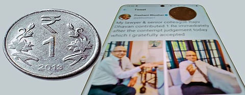 ನ್ಯಾಯಾಂಗವನ್ನು ವಿಮರ್ಶೆ ಮಾಡಿದ್ದ ಎರಡು ಟ್ವೀಟ್ ಗಳಿಂದ ನ್ಯಾಯಾಂಗ ನಿಂದನೆಗೆ ಗುರಿಯಾಗಿದ್ದ ಹಿರಿಯ ವಕೀಲ ಪ್ರಶಾಂತ್ ಭೂಷಣ್ ಅವರಿಗೆ ಸಾಂಕೇತಿಕವಾಗಿ ಒಂದು ರೂಪಾಯಿ ದಂಡ ವಿಧಿಸಿ ಅವರನ್ನು ಬಿಡುಗಡೆ ಮಾಡುವ ಮೂಲಕ ಸುಪ್ರೀಂ ಕೋರ್ಟ್ "ಉದಾರತೆ" ಮೆರೆದಿದೆ.