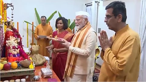 ಮಹಾಲಕ್ಷ್ಮಿ ಮತ್ತು ಗಣಪತಿ ಪೂಜಾ ಕಾರ್ಯಕ್ರಮದಲ್ಲಿ ಭಾಗವಹಿಸಲೆಂದು ಪ್ರಧಾನಮಂತ್ರಿ ನರೇಂದ್ರ ಮೋದಿ ಅವರು ಸುಪ್ರೀಂ ಕೋರ್ಟ್ ಮುಖ್ಯ ನ್ಯಾಯಮೂರ್ತಿ (ಸಿಜೆಐ) ಡಿ ವೈ ಚಂದ್ರಚೂಡ್ ಅವರ ನಿವಾಸಕ್ಕೆ ಬುಧವಾರ ಭೇಟಿ ನೀಡಿದ್ದು ಕಾರ್ಯಾಂಗ ಮತ್ತು ನ್ಯಾಯಾಂಗದ ನಡುವಿನ ಅಧಿಕಾರ ಪ್ರತ್ಯೇಕತೆಯ ಬಗೆಗಿನ ಚರ್ಚೆಗೆ ನಾಂದಿ ಹಾಡಿದೆ.