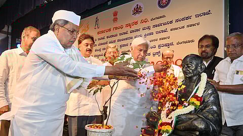 ಗಾಂಧಿ ಜಯಂತಿ ಅಂಗವಾಗಿ ವಿಧಾನಸೌಧದ ಬ್ಯಾಂಕ್ವಟ್ ಹಾಲ್ನಲ್ಲಿ ಗ್ರಾಮೀಣಾಭಿವೃದ್ಧಿ ಮತ್ತು ಪಂಚಾಯತ್ ರಾಜ್ ಇಲಾಖೆ ಸೋಮವಾರ ಹಮ್ಮಿಕೊಂಡಿದ್ದ 2023ನೇ ಸಾಲಿನ ಗಾಂಧಿ ಗ್ರಾಮ ಪುರಸ್ಕಾರ ಪ್ರಶಸ್ತಿ ಪ್ರದಾನ ಸಮಾರಂಭ ಮತ್ತು ಸ್ವಚ್ಚ ಸರ್ವೇಕ್ಷಣಾ ಗ್ರಾಮೀಣ ರಾಜ್ಯ ಮಟ್ಟದ ಪ್ರಶಸ್ತಿ ವಿತರಣಾ ಸಮಾರಂಭದಲ್ಲಿ ಪ್ರಶಸ್ತಿ ಪ್ರದಾನ ಮಾಡಿ ಅವರು ಮಾತನಾಡಿದರು.